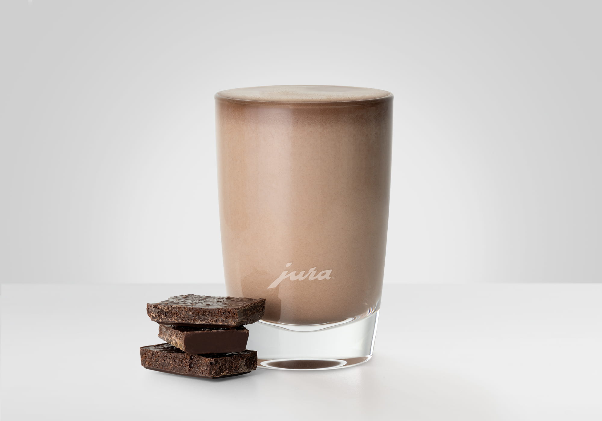 將熱巧克力倒入拿鐵瑪琪雅朵杯中