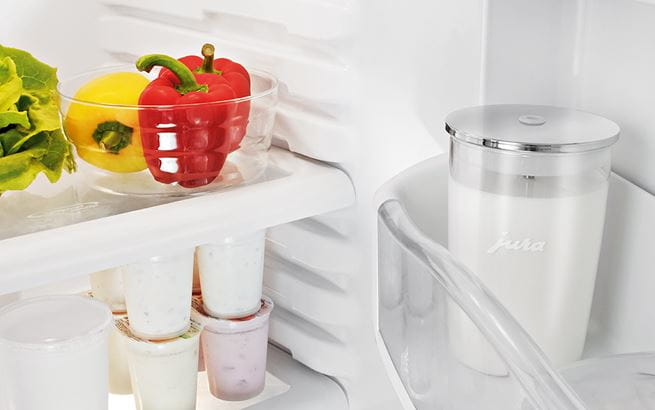 只要連接咖啡機上的奶管與鮮奶玻璃瓶的蓋子即可製作您喜愛的咖啡飲品。製作飲品時,奶管外部並不會直接碰觸到牛奶,此設計可確保鮮奶流經的封閉管道乾淨與衛生。