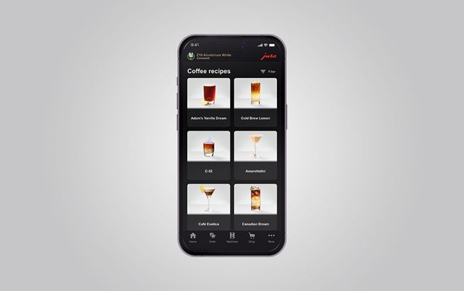 無論是冷飲或熱飲,JURA提供您獨一無二的飲品靈感,J.O.E.®. 提供一系列菜單,輕鬆一鍵使用App,製作一系列飲品饗宴。