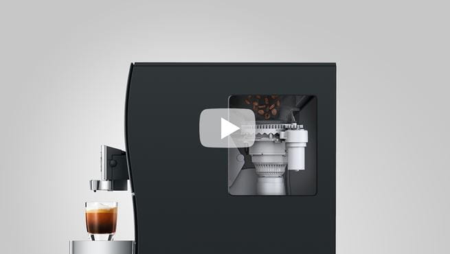 為確保每一杯咖啡的完美磨豆,JURA研發了磨豆辨認系統(P.R.G.),電子快速調整磨豆機以控制磨豆精確度。相較於手動調整能更加快速,從義式濃縮極細研磨到濃黑飲品的極粗研磨,皆可迅速自動調整,亦可在製作飲品前從香氣選擇中手動設定喜愛的研磨度。